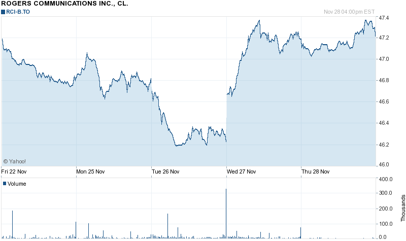 Rogers Communications Inc. struck a deal on Sunday, announced on Tuesday a $5.2 Billion deal for the sports broadcasting rights for National Hockey League (NHL) for the next 12 years. This is the biggest in the history of NHL. This is important to the media division since sporting events get people tied to tv in a way unlike any other entertainment – this means more subscribers for rogers and more Advertising revenue generating potential for Rogers. Bell Media, lost the bid for the deal, so that means no hockey broadcasting rights at the end of this season for TSN (80% owned by Bell Media). Rogers shares went up as much as 2.4% on wednesday to C$47.30 from C$46.20 on Tuesday’s low. CBC will share saturday night hockey games with Rogers.