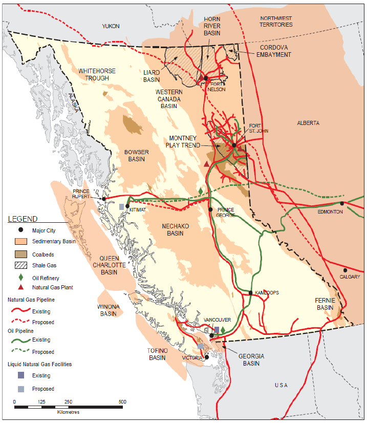 Currently Western Canada’s capacity for marketable natural gas amounts to 821 Tcf (Trillion cubic feet) according to National Energy Board (NEB) estimates of which 632 Tcf is remaining by 2012 end. Of these, 531 Tcf are unconventional which are mostly found in Montney and Horn River. Montney formations and Horn River are located in North-eastern British Columbia.
