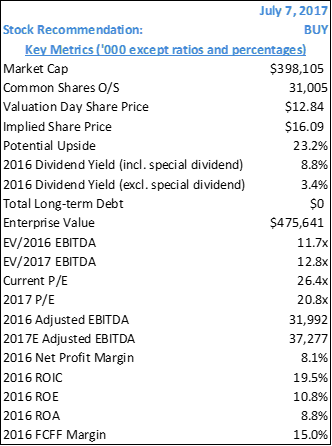 [I wrote this Equity/Stock Research Report on July 7, 2017; the company subsequently got acquired but thought I would post it to share some of my valuation thought process]