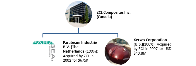 ZCL Composites Inc. manufactures and supplies underground storage tanks (UST) made from environmentally friendly fiberglass reinforced plastic (FRP). The company is the largest player in North America in this business. The purpose of the business is to provide corrosion resistant solutions for tanks that protect the environment. The company was established in 1987 to supply fiberglass underground fuel storage tanks in Canada and in 1989 manufactured the first double-wall fiberglass tanks. The company has 7 plants: 2 plants in Canada, 4 in the US and 1 in The Netherlands. ZCL generates revenues through 3 main business segments (by products):