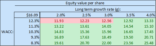 The company generated an estimated FCFF margin of 15% in 2016 due to strong operational performance. ZCL is estimated to grow FCFF at 5.3% CAGR at 10.6% FCFF 10Y margin, triggered by positive strong revenue growth, sustaining cost and hence profit margins, and modest CapEx requirements. The DCF model assumes terminal growth rate of 3% and WACC of 10.2% to calculate PV of FCFF.